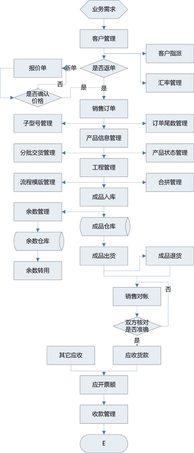 客户管理:包括客户档案建立,多个送货地址管理,业务员、业务助理分配,汇率表登记等